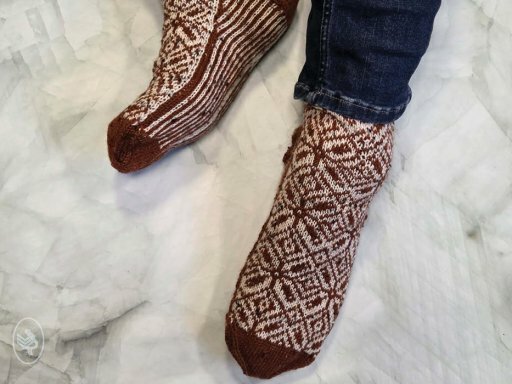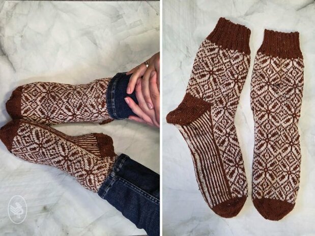 Brei vrolijke winterse sokken! Heerlijk voor in huis met de koude dagen..  Benodigde breinaalden: sokkennaalden 2,5mm Het breipakket bestaat uit: Het patroon 2 bollen Soqs Bombay... Lees meer