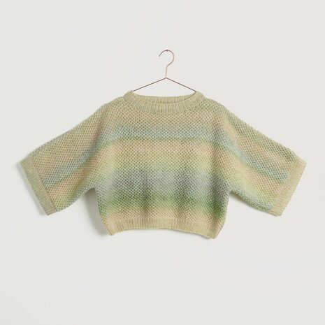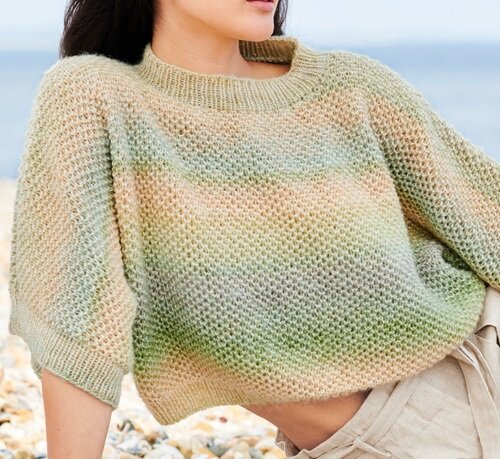 Deze trui is gebreid met Creative Painted Power Cotton dk van Rico. Painted Power Cotton dk is een zachte katoen/wol draad met een heel leuk kleurverloop. Hiermee maak je een heel comfortabele zomer trui, die warm genoeg is voor de koude zomeravonden. Het breipakket bevat alle materialen en het patronenboekje (excl. breinaald) om de trui te breien. Maten trui: 36/38 (40/42 - 44/46 - 48/50 - 52) Dit breipakket voor de trui bestaat uit: Het magazine Lovewool 22 4 (5, 6, 7, 8) bollen Creative Painted Power Cotton dk Rico in kleur naar keuze (excl. Breinaalden) Benodigde breinaalden: 3,5 en 4mm, lengte 80cm Wil je alleen het patroon kopen? Bestel dan Lovewool 22