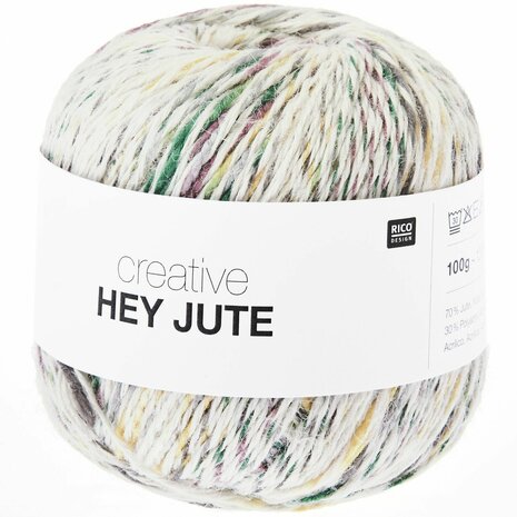 Creative Hey Jute is gemaakt van jute en polyacryl. De combinatie van natuurlijke en synthetische vezels zorgt voor een sterk garen. Het garen is bijzonder geschikt voor haakprojecten. De natuurlijke jutevezel is gecombineerd met een gekleurd garen.
