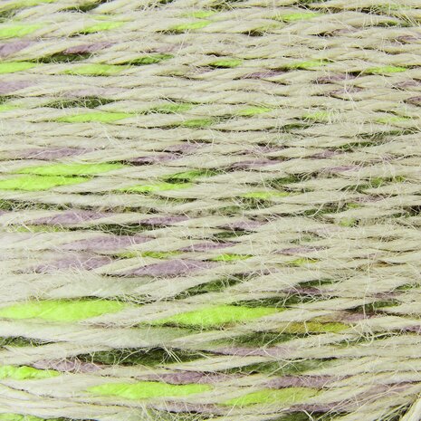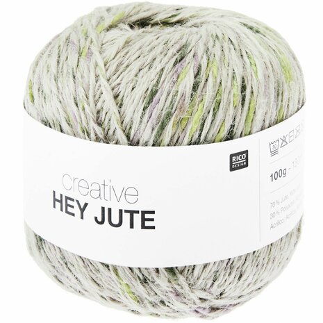 Creative Hey Jute is gemaakt van jute en polyacryl. De combinatie van natuurlijke en synthetische vezels zorgt voor een sterk garen. Het garen is bijzonder geschikt voor haakprojecten. De natuurlijke jutevezel is gecombineerd met een gekleurd garen.