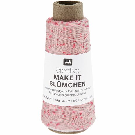 Rico Creative Make it Blümchen is een verrassende meeloopdraad. In het draadje zitten allerlei leuke bloemetjes. Zo geef je je haak- of breiwerk een verrassend effect!