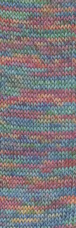 Footprints van Lang Yarns is een mooie fantasie sokkengaren met een gemêleerd kleureffect. Door de combinatie van katoen, wol en polyamide is het een sterke en lichte draad en goed ademend. Een leuke draad die niet alleen voor sokken te gebruiken is.