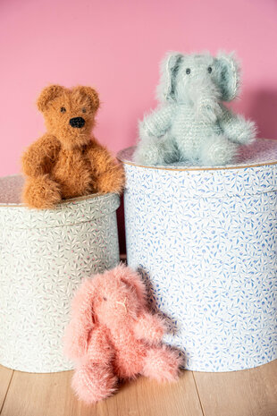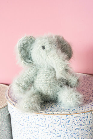 Is het geen schatje? Olifant wordt super zacht en knuffelig door het toegevoegde Furry Furry draadje. En met de beweegbare armen en benen, maakt het de olifant extra leuk. Afmeting olifant zittend: ca. 15cm Benodigde haaknaald: 2,5 mm Dit haakpakket voor olifant Oreo Fur bestaat uit: 1 patroon 1 bol Scheepjes Catona 172 1 restje Catona lichtroze 2 bollen Ricorumi Furry Furry kleur 007 1 paar veiligheidsoogjes 8 mm ovaal 4 knopen 15 mm (excl. haaknaald) (excl. vulling)