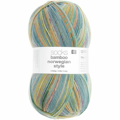 Rico Superba 4-draads Bamboo! Een heerlijk zacht 4-draads sokkengaren gemaakt met wol en bamboe in een zelfstrepende kleureffect. Eén bol is voldoende voor een paar sokken. Maar denk bij dit leuke garen ook aan een leuke omslagdoek of sjaal.